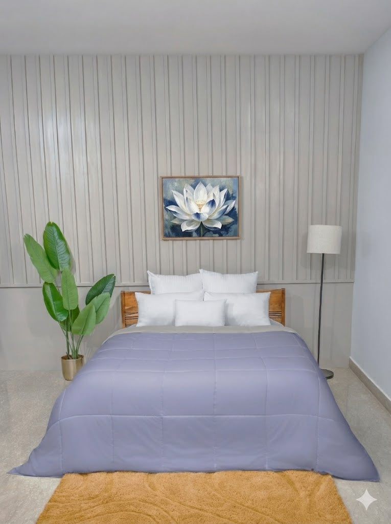 A Premium Reversible Comforter: Enjoy luxurious comfort with this lightweight, reversible microfiber comforter, featuring a soft filling that adjusts to your body temperature for cozy, year-round use.