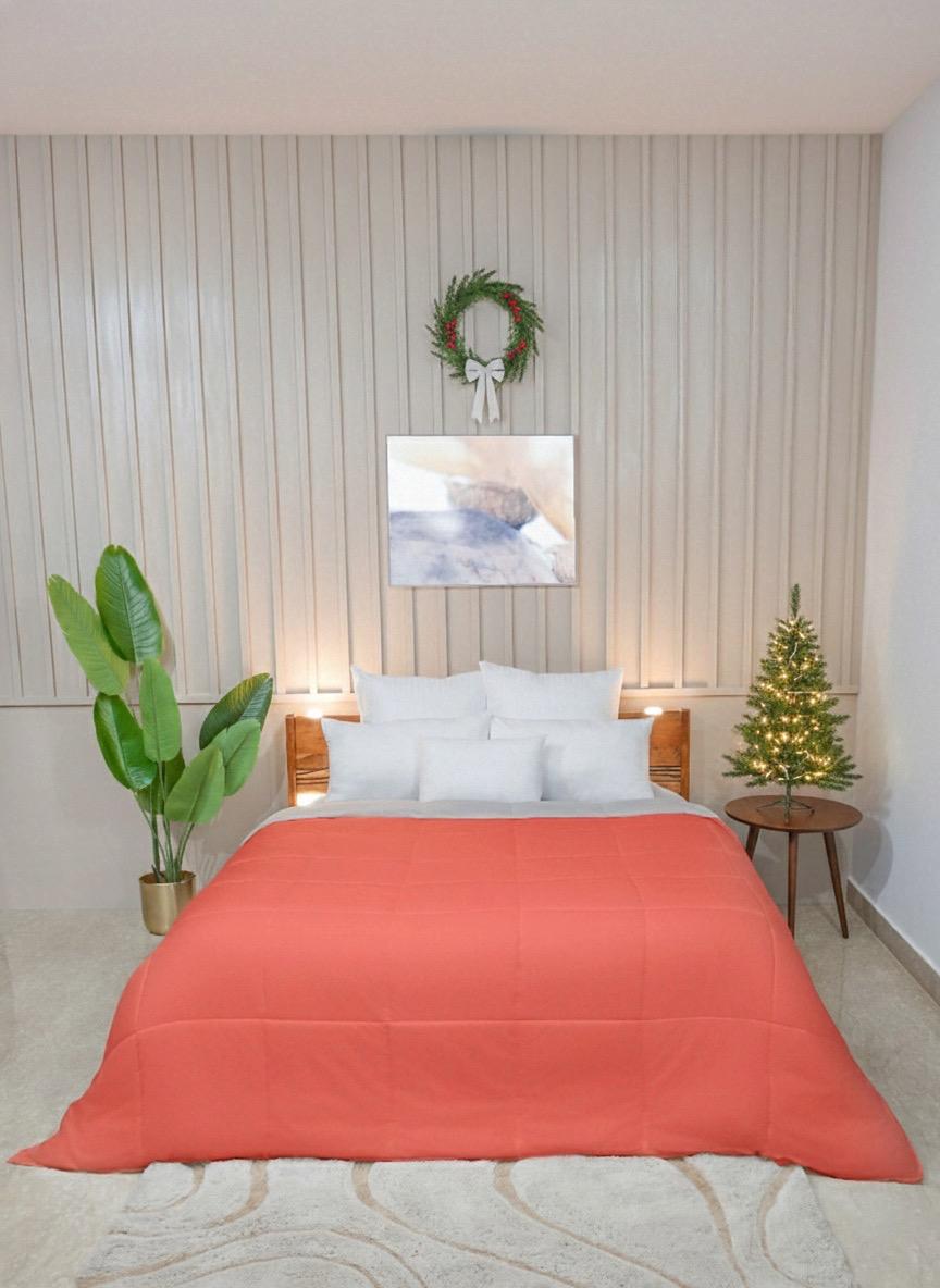 A Premium Reversible Comforter: Enjoy luxurious comfort with this lightweight, reversible microfiber comforter, featuring a soft filling that adjusts to your body temperature for cozy, year-round use.